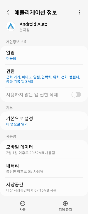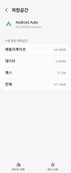 설정-앱-Android Auto(안드로이드 오토)-저장공간-캐시삭제 후 재실행