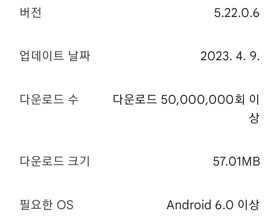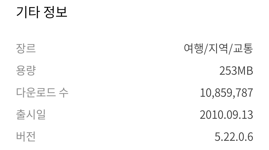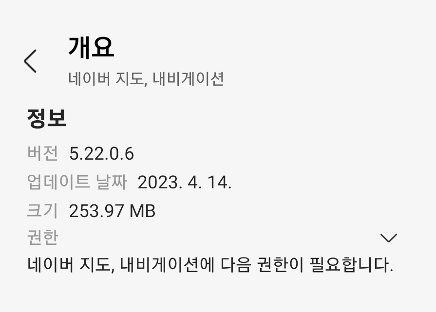 표에서 보시는 바와 같이 갤럭시 스토어에서 설치된 네이버지도는 다른 스토어와 같이 5.22.0.6으로 표시되고 있으나